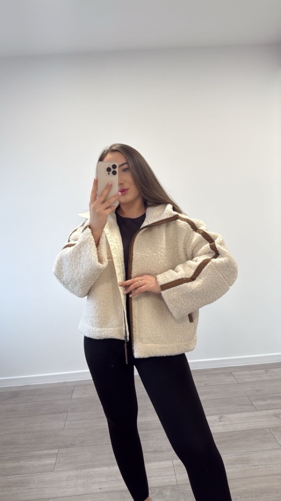 Wygoda , ciepło i styl w jednym. Nasza kurtka to idealna propzycja na chłodniejsze dni. Wykonana z miękkiego pluszowego materiału typu teddy , otula ciało i zapewnia doskonału komfort noszenia. Model w kolorze kremowym z kontrastującymi karmelowymi wstawkami. dodaje całości charakteru i nowoczesnego wyglądu. Luźny krój oviersize sprawia że kurtka świetnie wygląda zarówno w casualowych , jak i bardziej streetwearowych stylizacjach. Zamek na całej długości , wysoka stójka oraz boczne kieszenie to funkcjonalne detale , które podnoszą wygodę użytkowania.
