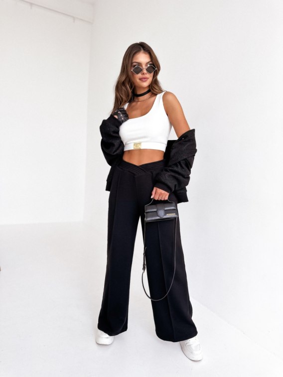 Czarne spodnie dresowe z szerokimi nogawkami, które zapewniają wygodę i swobodę ruchów to doskonały wybór dla kobiet ceniących sobie sportowy look. Ich oryginalne wykończenie gumy w pasie i przeszyty kant dodaje im niepowtarzalnego charakteru.