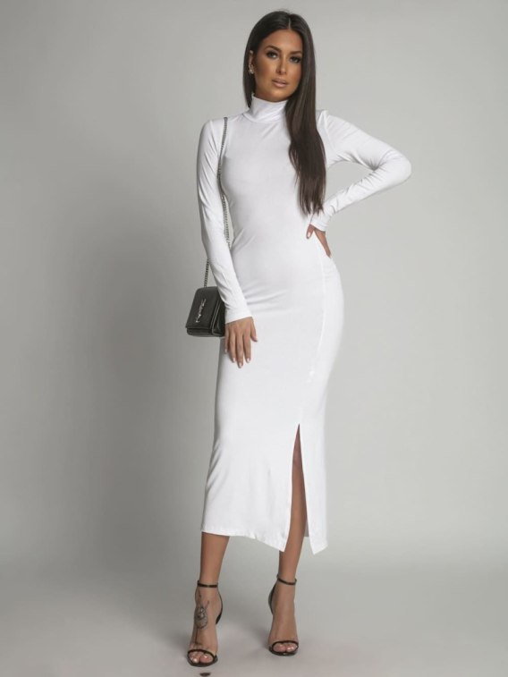 Sukienka Short w kolorze czerwonym z golfem oraz rozcięciem to najlepszy wybór na zbliżające się święta. Sukienka dzięki materiałowi  z wiskozy jest delikatna co zapewni komfort w noszeniu.
