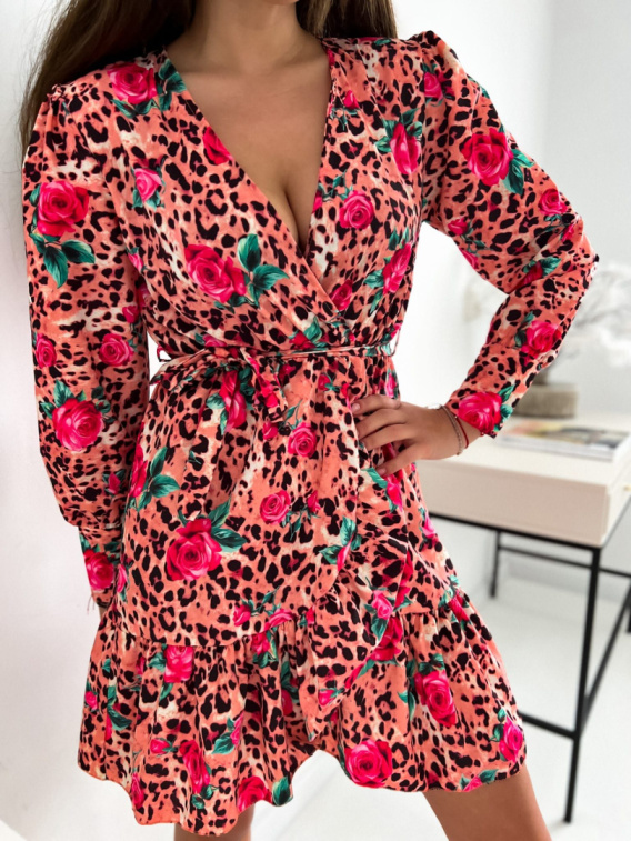 Subtelna, zwiewna sukienka doskonała na każdą okazję. Kwiatowy print i falbanka dodają jej dziewczęcego uroku. Poczuj się w niej kobieco i elegancko.